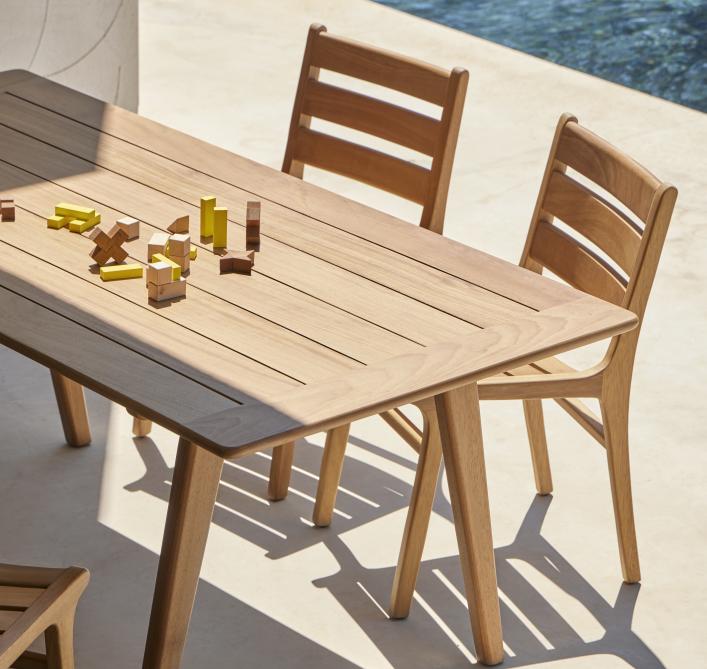 Mobilier eco responsable fabriqué en iroko massif de première qualité, pour l'entretien utiliser un chiffon doux humidifié avec de l’eau et un produit nettoyant non abrasif, Tout bois massif exposé en extérieur change d’aspect et de couleur ce qui n’altère en rien sa qualité. Nécessite un entretien régulier.