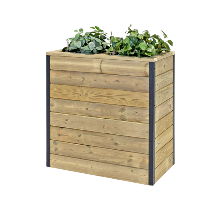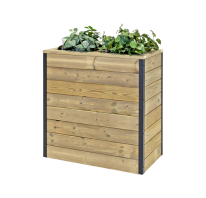 Jardinière en bois traité avec système d'auto-arrosage intégré, conçue pour une utilisation en intérieur et en extérieur.