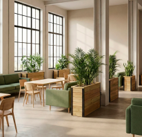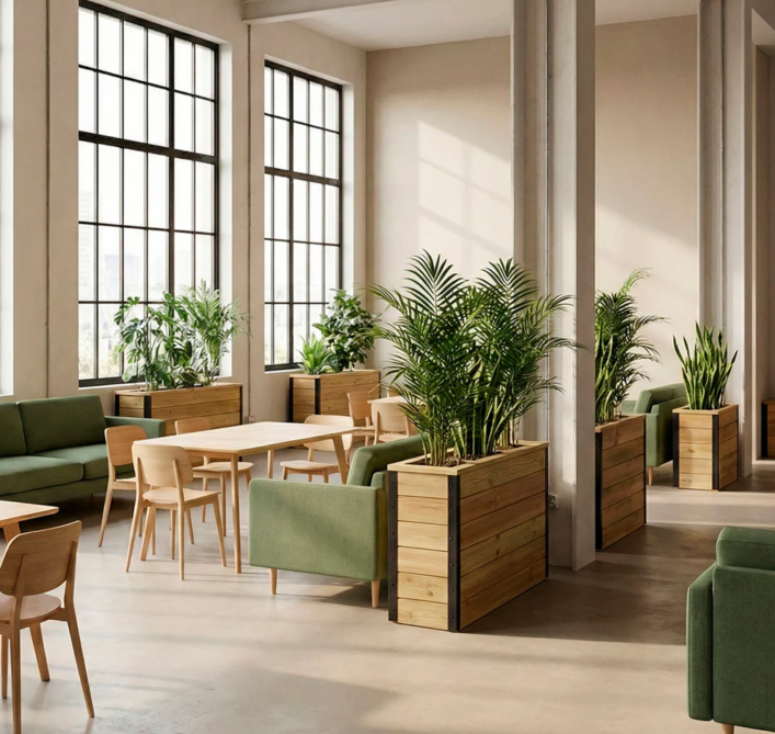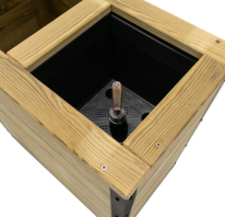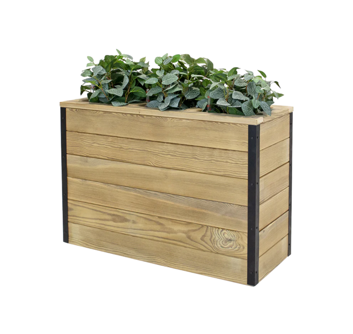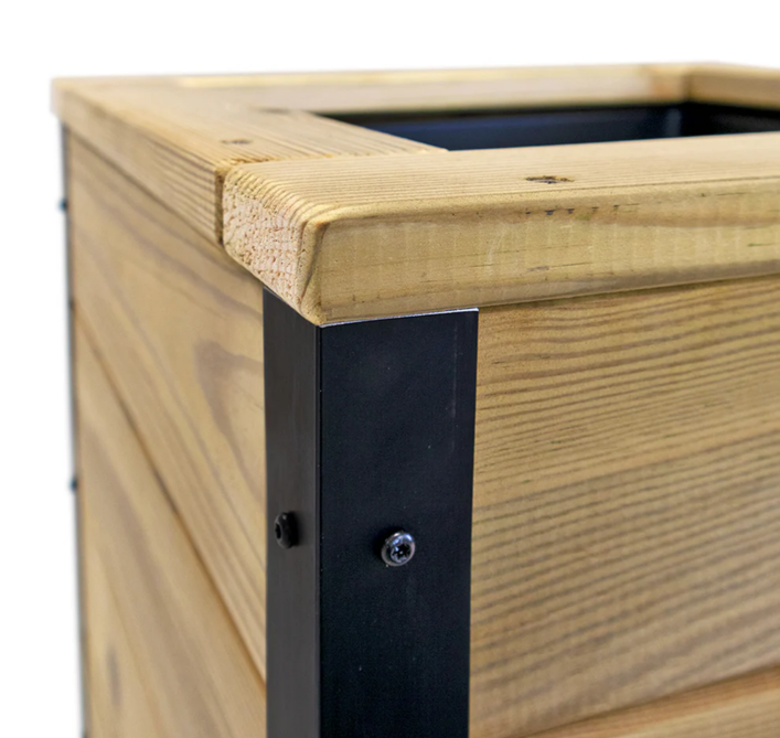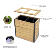 Jardinière en bois traité avec système d'auto-arrosage intégré, conçue pour une utilisation en intérieur et en extérieur.