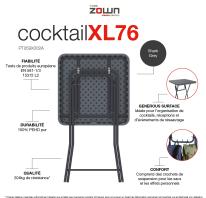 Idéale pour l'organisation de cocktails, de réceptions et d'évènements de réseautage : son design permet des échanges confortables et dynamiques entre les personnes présentes, qu'elles soient debout ou assises sur de hauts tabourets. Elle comprend également des crochets de suspension pour les sacs et les effets personnels, ce qui augmente le confort en libérant de l'espace.